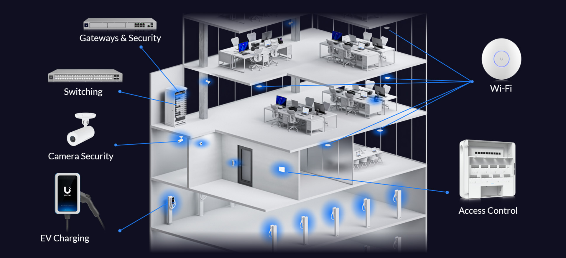 Ubiquiti je přední světová technologická společnost, založená v Californii v roce 2003, která posouvá hranice v oblasti podnikových i domácích sítí, bezdrátových technologií a bezpečnostních řešení. Portfolio značky zahrnuje špičkové produkty pro sítě a její nejrozšířenější řada se nazývá UniFi, která zahrnuje produkty pro kompletní podnikové a domácí sítě: WiFi přístupové body, switche, firewally (gateway), bezpečnostní kamery (Protect), door access systémy, VoIP telefony i řešení pro řízení provozu budov. Ať už spravujete 10 000 zařízení na jednom místě nebo napříč 10 000 jednotlivými lokalitami – s Ubiquiti můžete škálovat neomezeně a bez námahy.